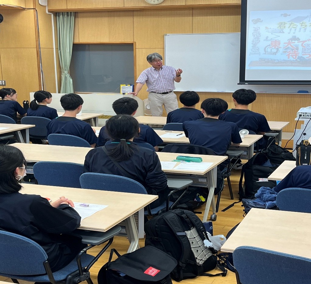 高校1年生60名にお集りいただきました。参加した生徒たちからは「加藤先生のこれまで歩んできた道の人生教訓は大変励みになりました。今後は自ら挑戦できるようになりたいです」など心動かされたという感想や、「工学部は全く未知の世界でしたが、ベンチャーの立ち上げや海外でも大きく活躍できることを知ることができて進路選択の参考になりました」「経済学部と連携して日本の経済に貢献していることや、医学部と連携してすごく役立っていることを知ることができた」「東大生は研究ばかりではなく趣味なども楽しんでいることを知ることができ、自分も部活と両立してチャレンジしたいです」など今回の講演を通じて工学部や東京大学に対するイメージが大きく変わったという声が多数ありました。